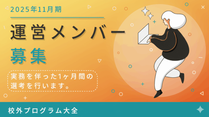 こんにちは、2025年は久しぶりに秋が帰ってきて過ごしやすくなってきましたね。 さて、校外プログラム大全は、通年で新しく中高生の運営メンバーを募集しています。 業務内容は多岐に渡り、既存の業務に加え […]
