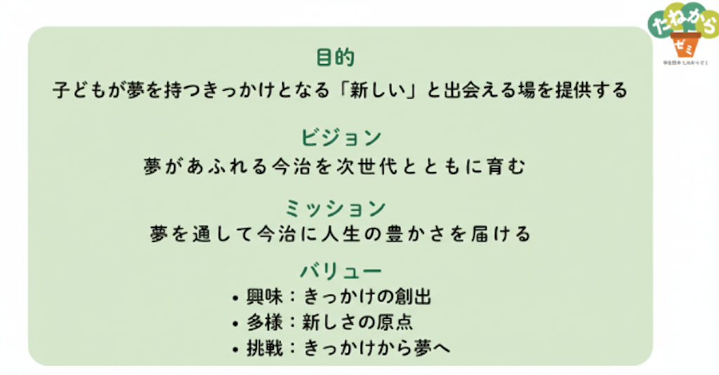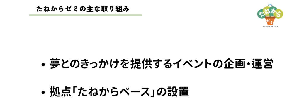・団体名:「学生団体 たねからゼミ」